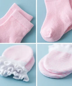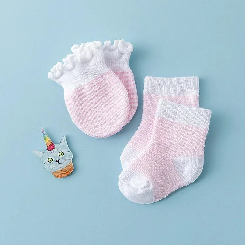 • Material suave y algodonoso :Hecho de material de algodón suave y transpirable, estos calcetines y guantes son suaves para la delicada piel de su bebé.