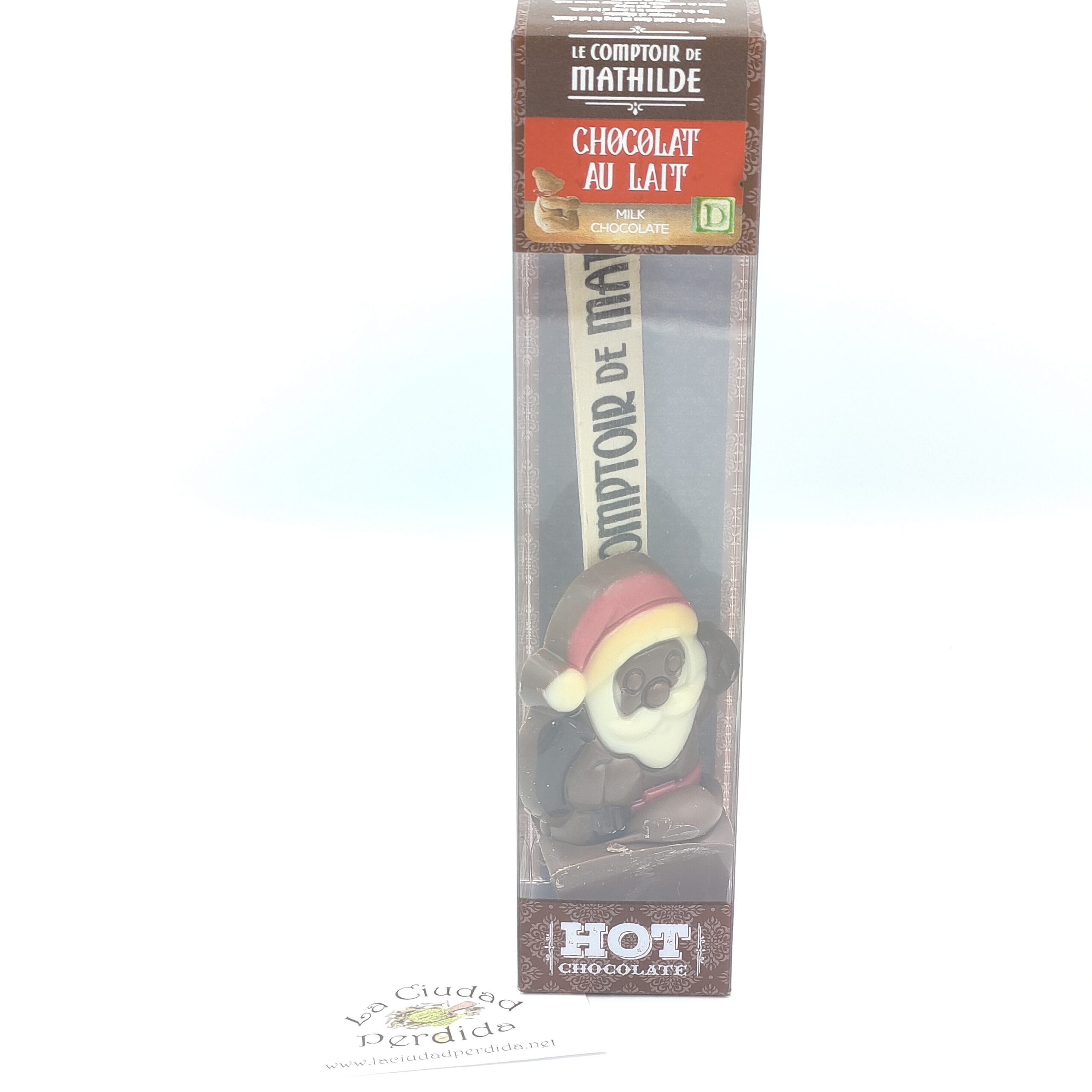 Ingredientes cuchara hot chocolate c/leche y Papá Noel: Chocolate con leche 85,71% (azúcar, manteca de cacao, leche entera en polvo, masa de cacao, emulgente: lecitina de soja, aroma natural de vainilla. Cacao: 33% mínimo). Puede contener trazas de cacahuetes, frutos secos, huevos y mostaza.
