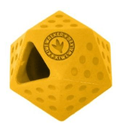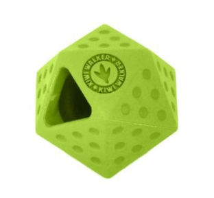 Juguete de goma muy resistente con agujeros para colocar golosinas de kiwi deshidratadas.