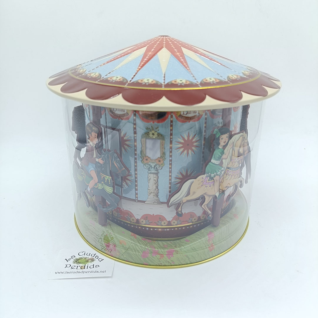 La lata con movimiento y sonido. Contine 400gr de minibarquillos artesanos de canela.