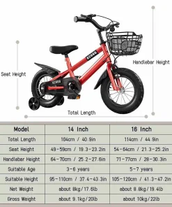 Bicicleta infantil, bicicleta de estudiante, con ruedas auxiliares, apta para niños de 3 a 7 años.