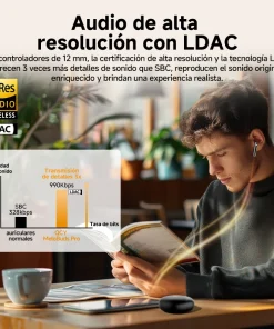Audio de alta resolución y códec LDAC– Equipado con certificación de alta resolución, el estándar de la industria para audio de alta calidad, reproduce el rico sonido original, brindando una experiencia similar a la de la vida.Con el códec LDAC, la velocidad de transferencia puede ser de hasta 990 kbps y transferir contenido de información 3 veces más que otros códec, como SBC.