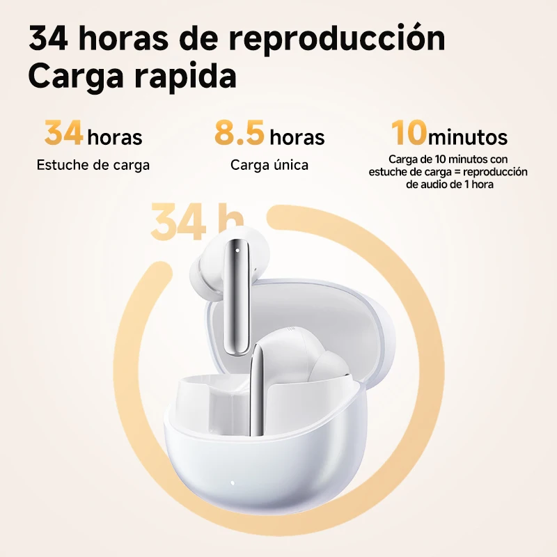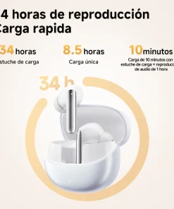 Proporcionan hasta 8,5 horas de tiempo de escucha con una sola carga,con el estuche de carga que ofrece 3 recargas adicionales para una reproducción prolongada de la música.Además, obtenga hasta 1 hora de reproducción con una carga rápida de 10 minutos.