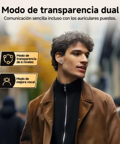 Modo de transparencia– Modo Vocal Enhance y modo de transparencia de 6 niveles. En modo de transparencia, le permite una comunicación sencilla incluso con sus auriculares puestos.