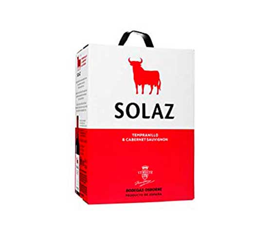 Solaz Tempranillo es un vino tinto elaborado por Osborne bajo la Indicación Geográfica Protegida Vino de la Tierra de Castilla. Elaborado con uva 100% Tempranillo, este vino destaca por su carácter joven, frutal y equilibrado. Su formato bag-in-box de 3 litros lo convierte en una opción práctica, sostenible y económica, ideal para el consumo diario, celebraciones o uso en hostelería.