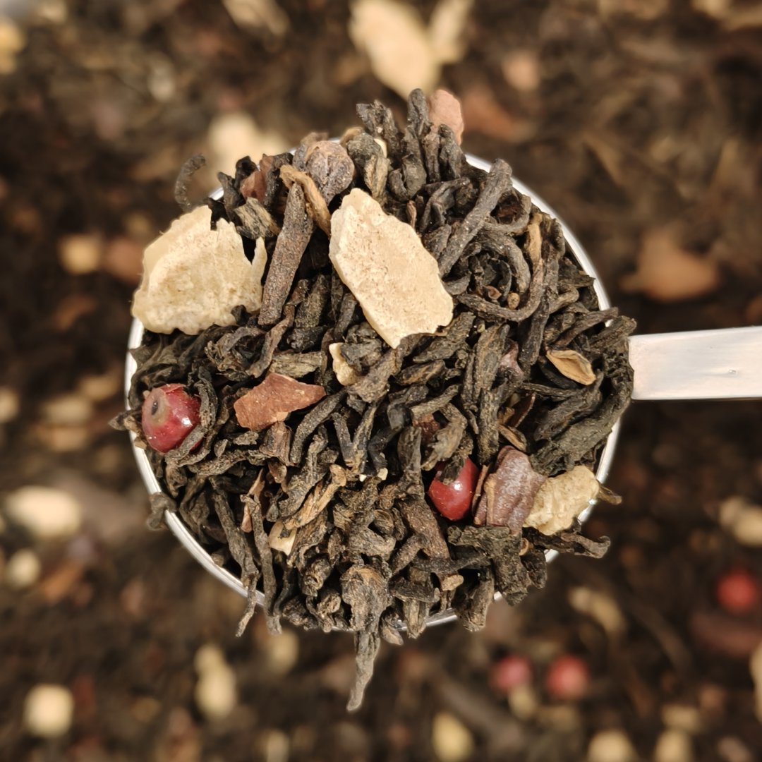 Ingredientes té rojo cookies de chocolate: Té rojo Pu erh, habas de cacao, ALMENDRA, pimienta roja, clavo y aromas naturales.